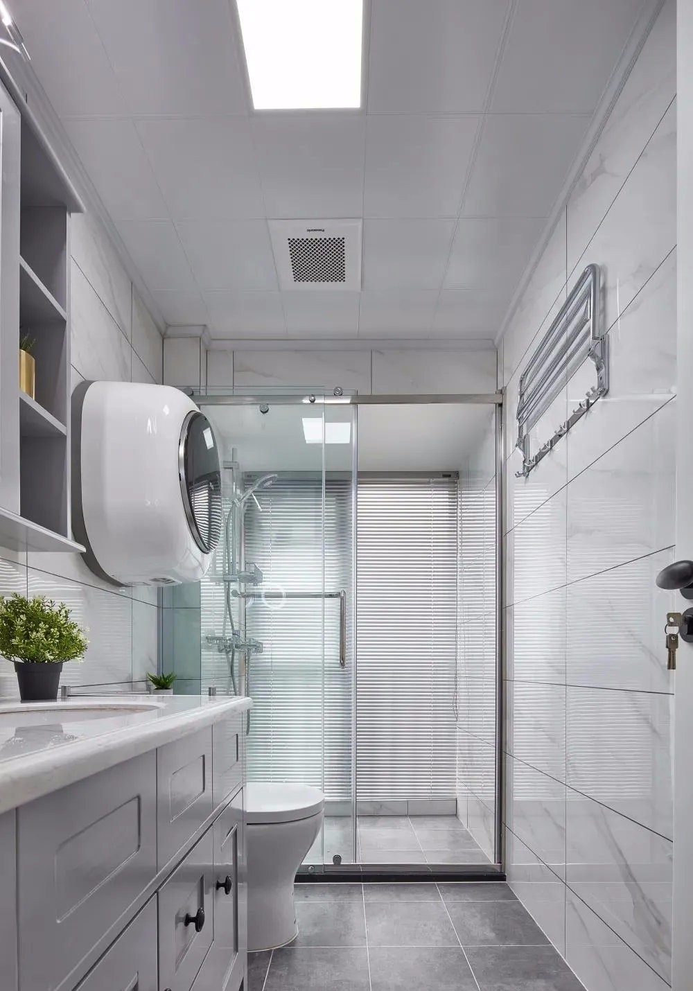 衛(wèi)生間延續(xù)灰白基調(diào)清玻與綠植正好點(diǎn)綴空間的通透和清醒