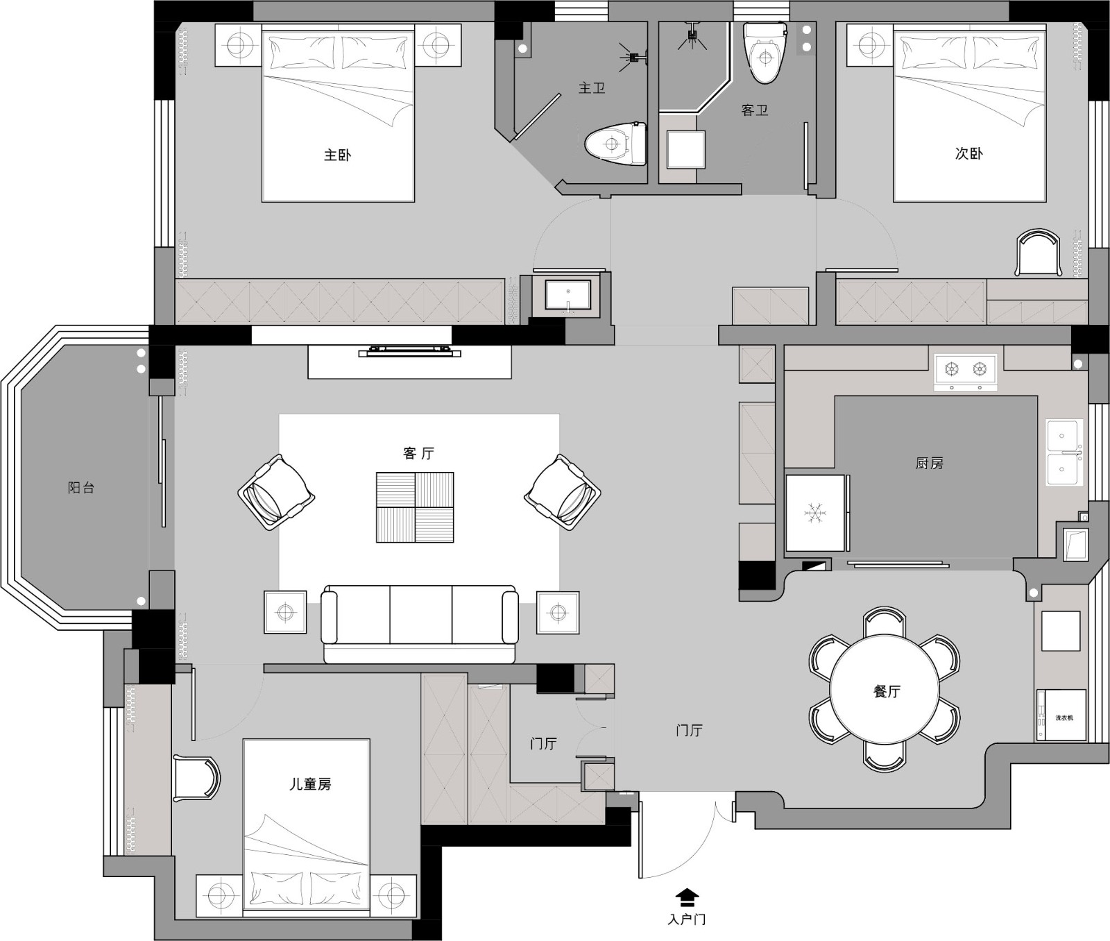 為了更好的使用空間,南次臥室進(jìn)門更改位置。進(jìn)門處設(shè)計(jì)在滿足進(jìn)門換鞋等的同時(shí),多出一個(gè)儲(chǔ)物間,增加了收納功能。