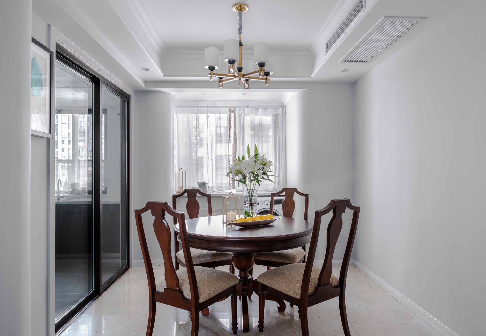 原餐廳廚房空間略顯小氣,且滿足不了約上3-5好友到家聚聚燒上一餐美食的需求??臻g改造后,廚房邊的足夠大的同時(shí)還擁有的一個(gè)放圓桌的空間,更便于人多時(shí)使用。
