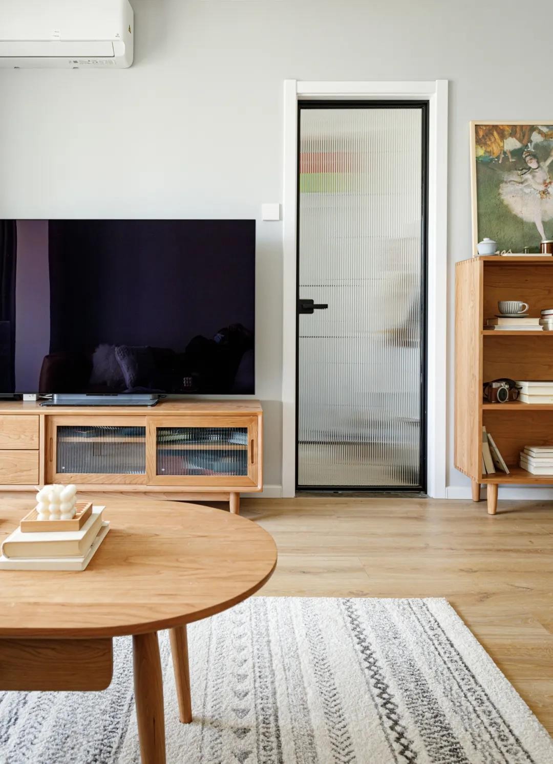 電視柜玻璃和廚房門都采用了長虹玻璃。若影若現(xiàn)的光影感顏值很高。