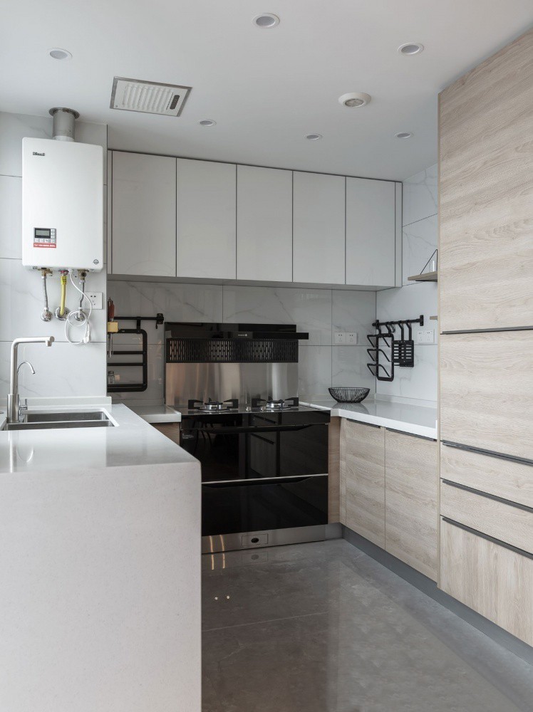 廚房,白色+木色的搭配平靜溫和又自然,整體干凈簡約不失格調。