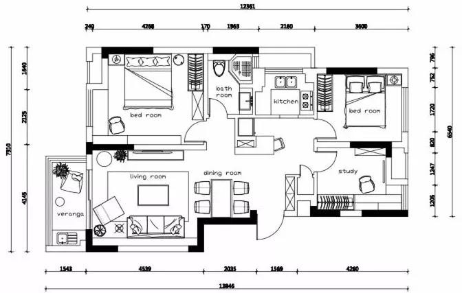餐廳后面是玄關(guān),左側(cè)設(shè)置嵌入式書(shū)柜與布簾,隔開(kāi)了臥室區(qū)域。