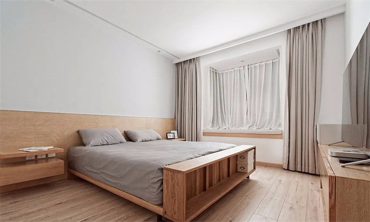 寬敞的臥室空間內(nèi),舒適簡(jiǎn)約的布局,木色地板與白色墻面相加的這一臥室中,以灰色作為空間點(diǎn)綴,讓整個(gè)屋子中都散發(fā)著寧?kù)o自然的氣息。?