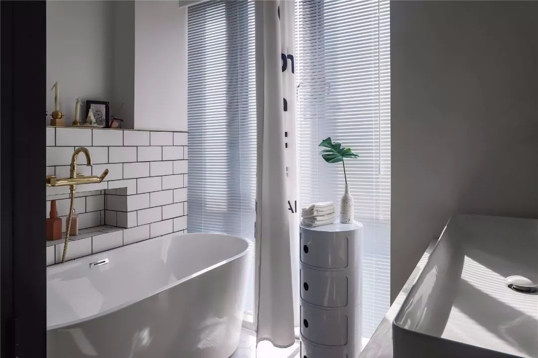 主衛(wèi)簡潔干凈的空間,搭配銅色質(zhì)感的衛(wèi)浴配件,也裝扮出檔次精致的華麗感。