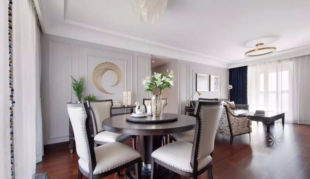 餐廳圓桌作為美式風(fēng)格中的經(jīng)典家居柔化了家人的用餐時(shí)刻增加了空間的層次感。