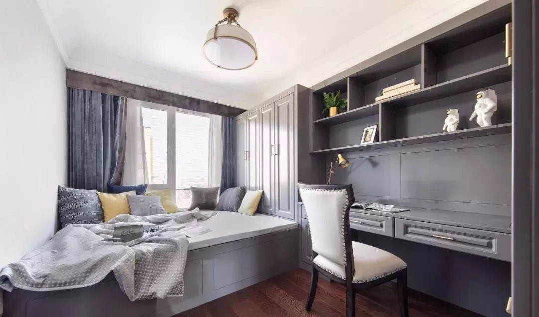 一體式儲(chǔ)物柜書(shū)桌組合使房間可作為書(shū)房活動(dòng)室、及客臥使用。