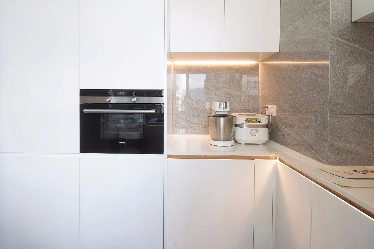 移門推入的廚房,內(nèi)置式的電器***限度地節(jié)省空間,打造充滿極簡主義的案臺。
