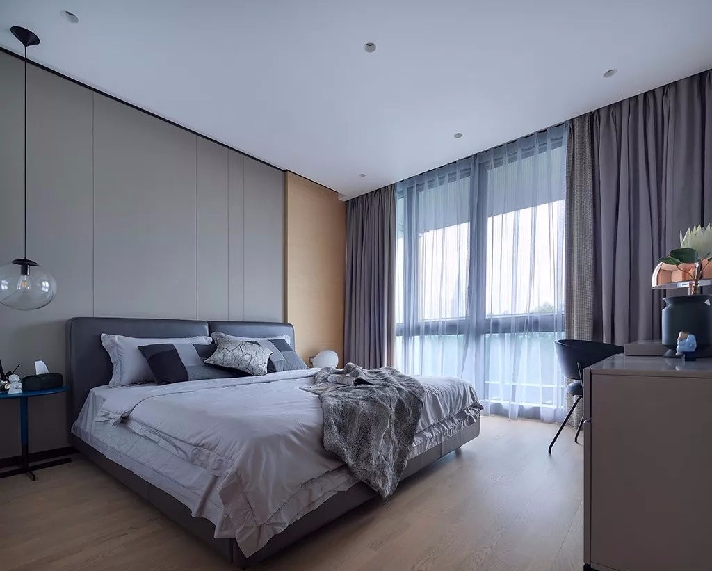 以深淺灰色為基調(diào),極簡的線條搭配舒適的家具,透過臥室仿佛能看出主人的生活狀態(tài)——獨(dú)立、純粹、真實(shí)。
