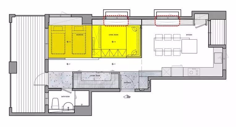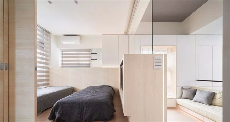 臥室被加高,更是把空間分割出來,與下沉式客廳形成空間功能對比。