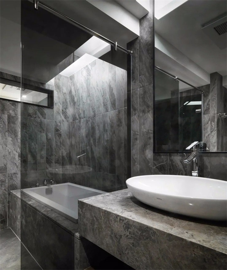 衛(wèi)生間整體以復(fù)古灰色的空間,設(shè)置臺(tái)上盆與大浴缸,營造出一種簡約優(yōu)雅的端莊感。????