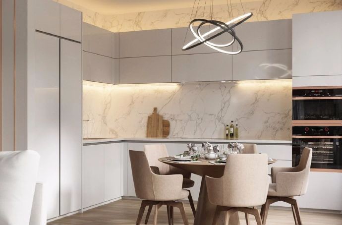 延續(xù)了整體空間的簡約質(zhì)感,運用沉靜簡美、簡潔有力的設(shè)計語言創(chuàng)造出一個獨具厚度的舒適空間