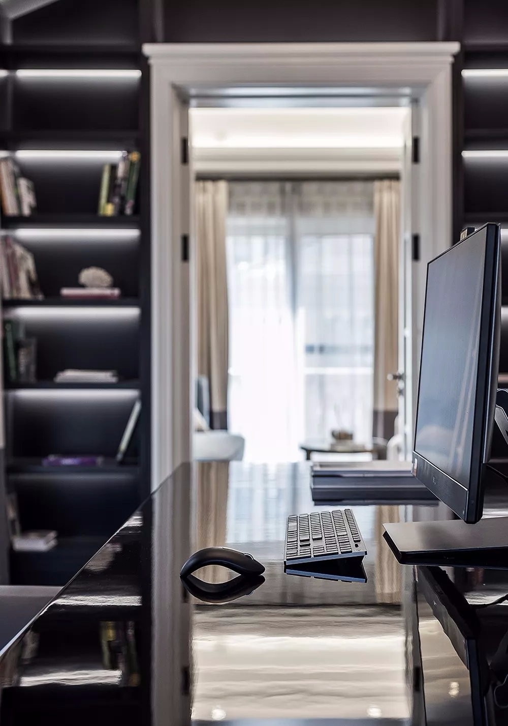 書房,選擇黑色為主的色調(diào),更加沉穩(wěn)大氣,富有內(nèi)涵。