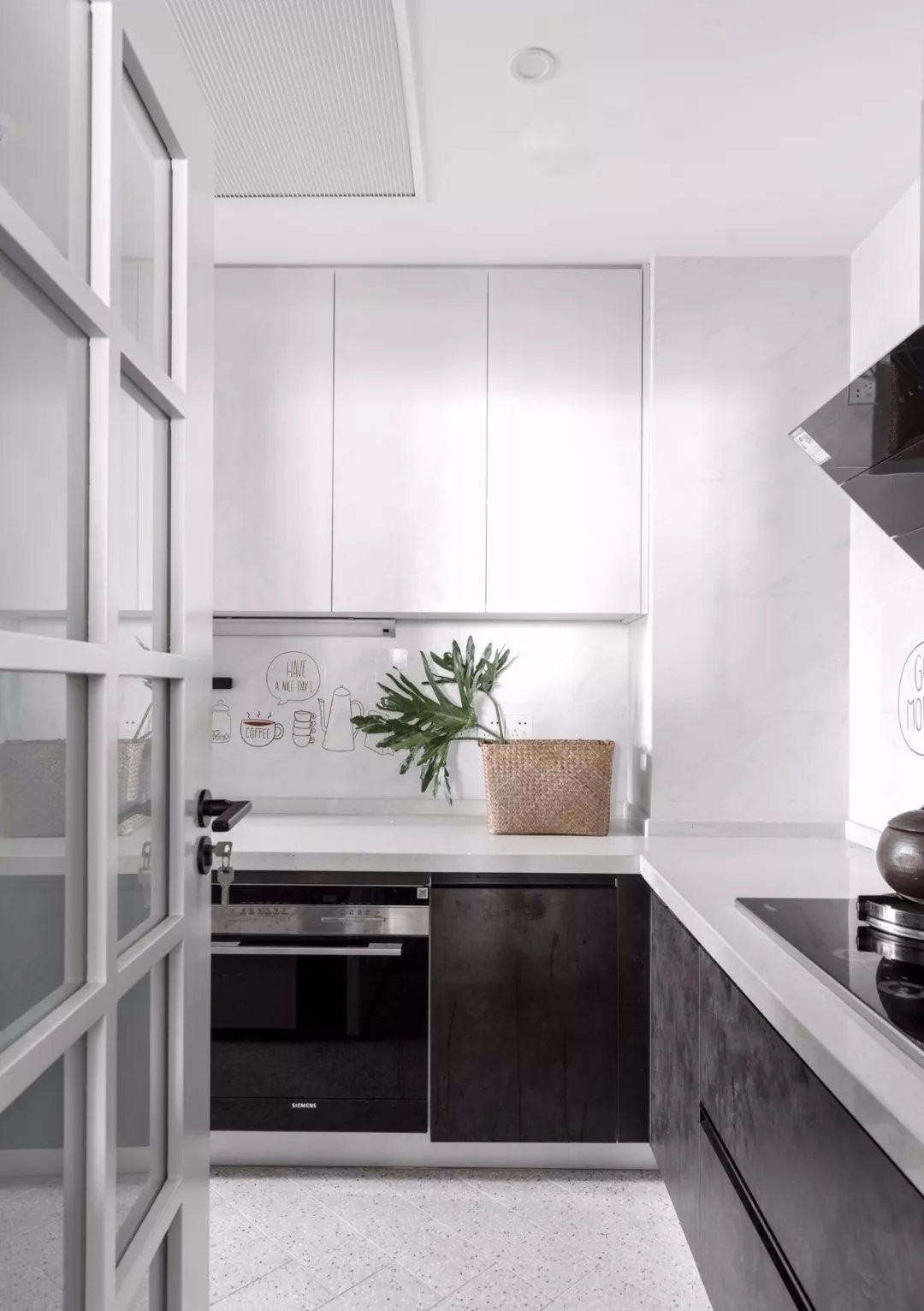 廚房整體現(xiàn)代輕奢的灰色調(diào)空間,讓做飯的空間也輕松年輕自然,L型的操作臺(tái),也是使得做飯的空間更加實(shí)用方面。