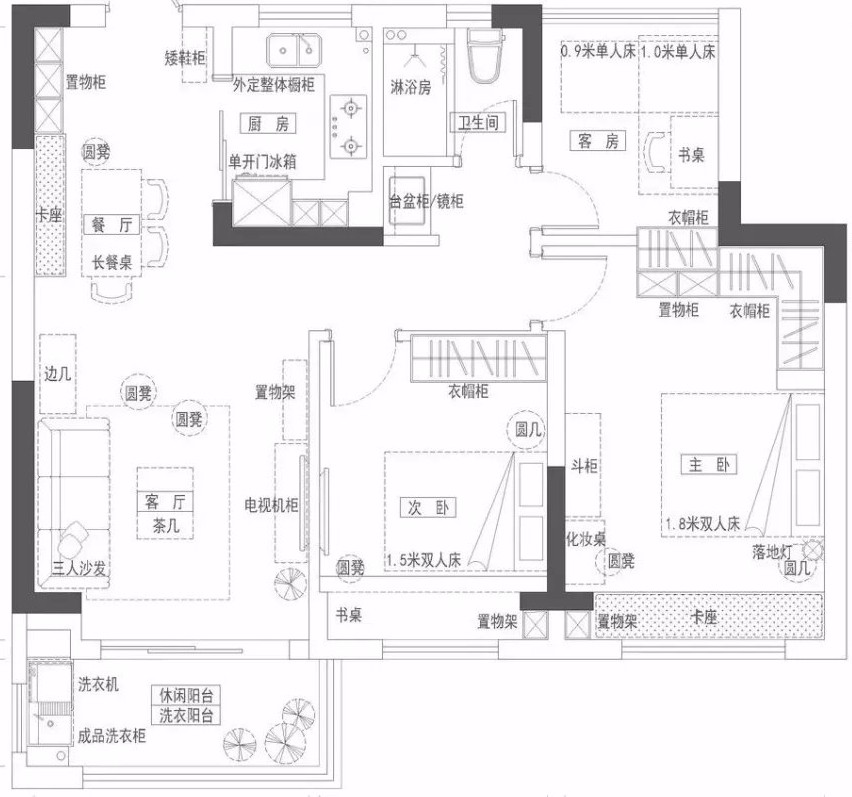 干濕分離淋浴和馬桶都在衛(wèi)生間和廚房互不干擾整體變得方便實用。