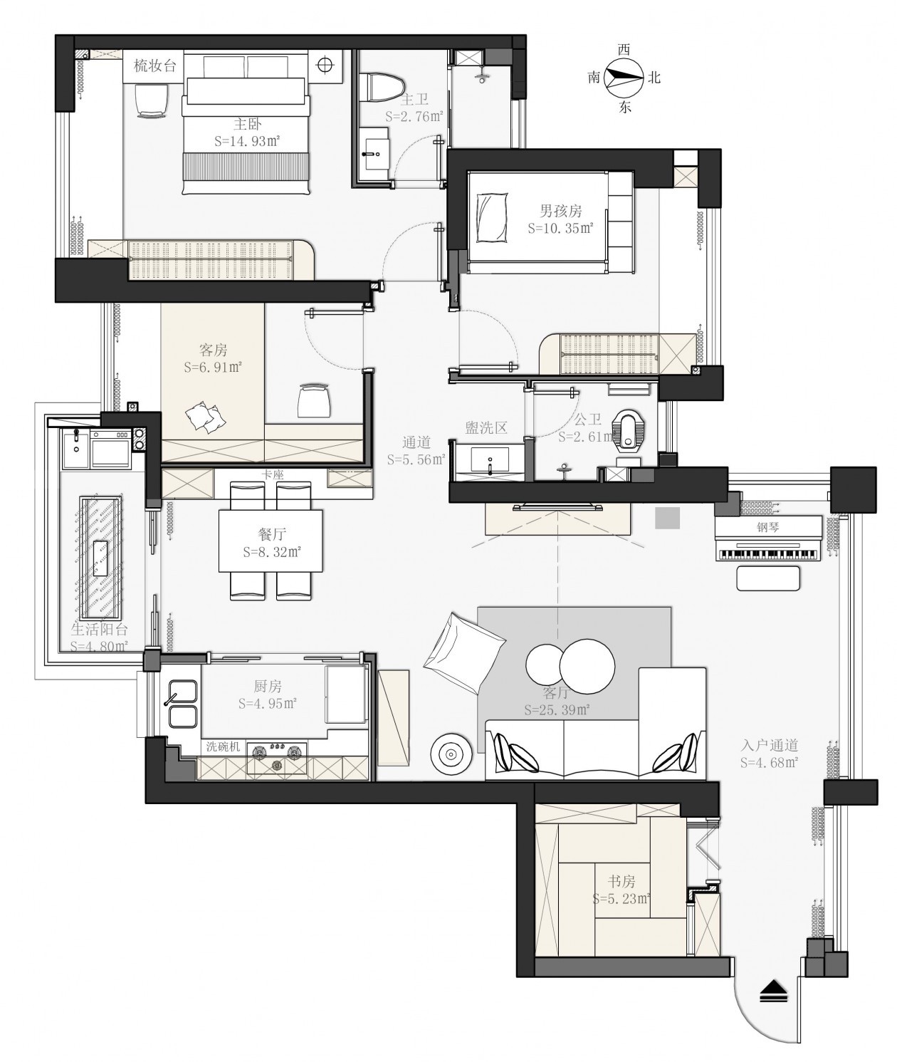想要一個(gè)獨(dú)立的書(shū)房,能夠靜心工作、學(xué)習(xí)。榻榻米的形式,讓空間實(shí)現(xiàn)***化的利用。寬大的工作臺(tái),這是男女主人工作、學(xué)習(xí)的獨(dú)享柔時(shí)光地方。