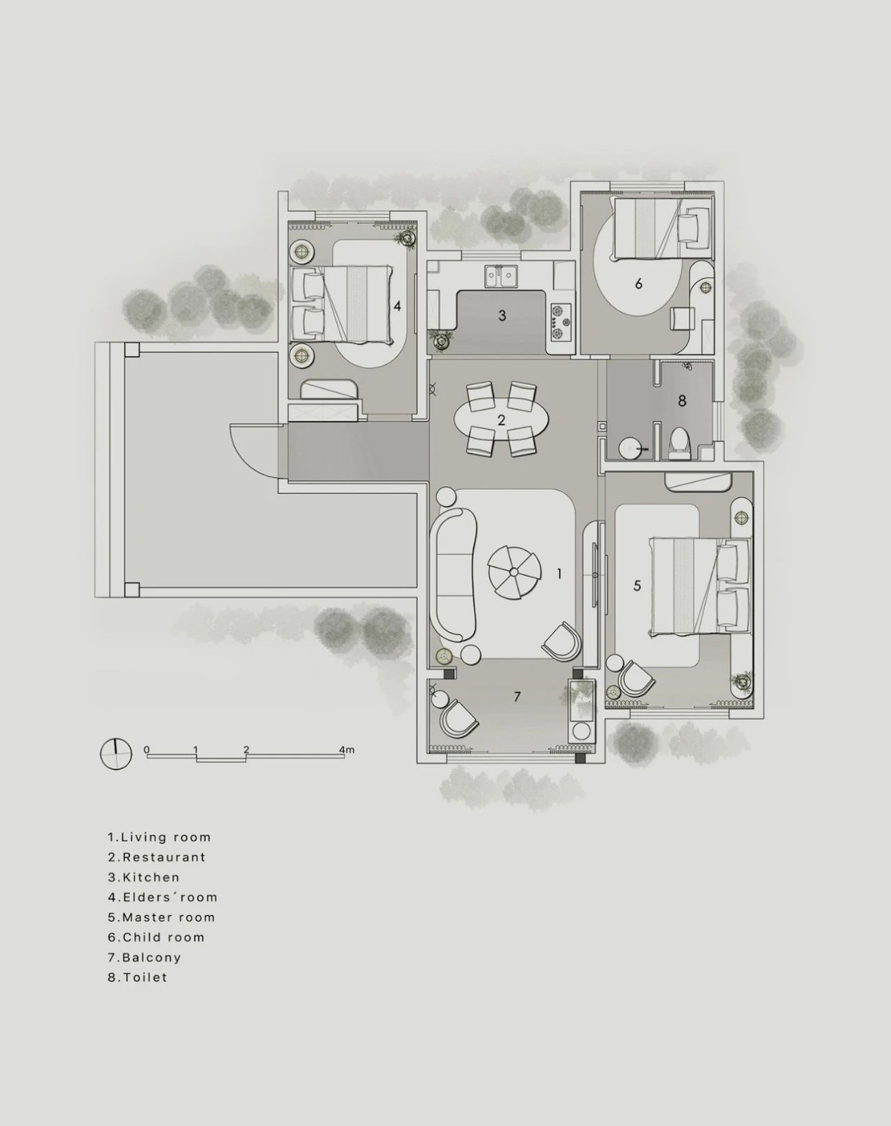 本案的設(shè)計在回歸自然的同時,充分融入了人文的元素。相信它能夠帶給人們以別樣的居住體驗,使人們在緊張忙碌之間獲得安靜與平和。