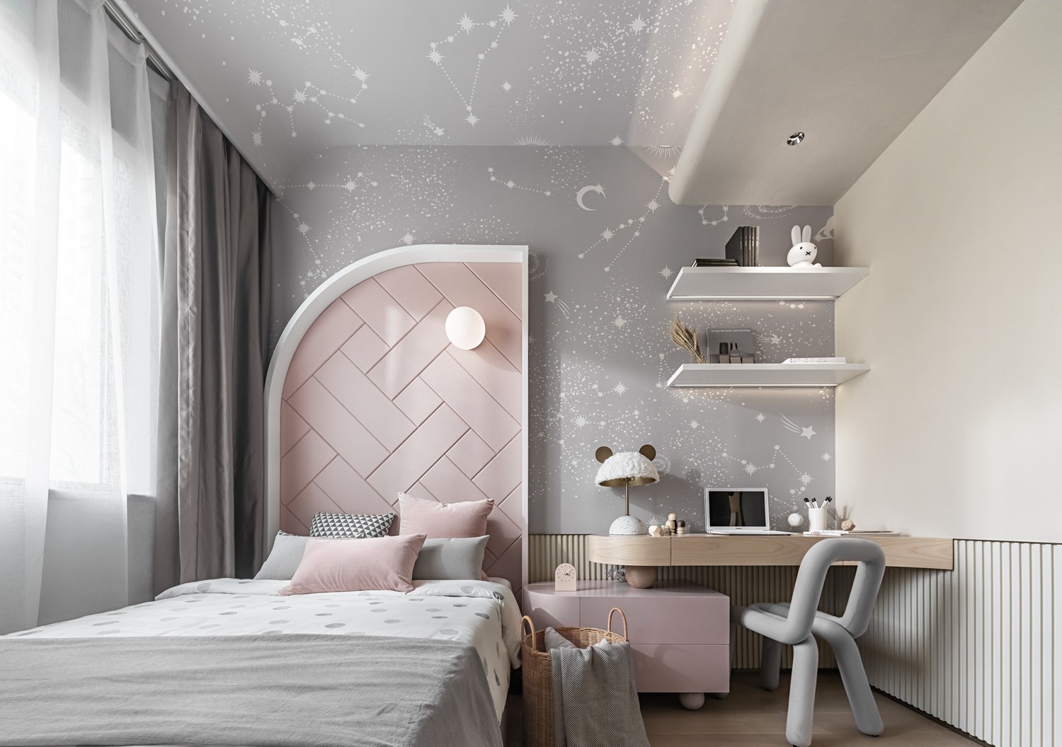 兒童房的調(diào)性與全屋的設(shè)計語言保持一致,清新淡雅又不失自然氣息。