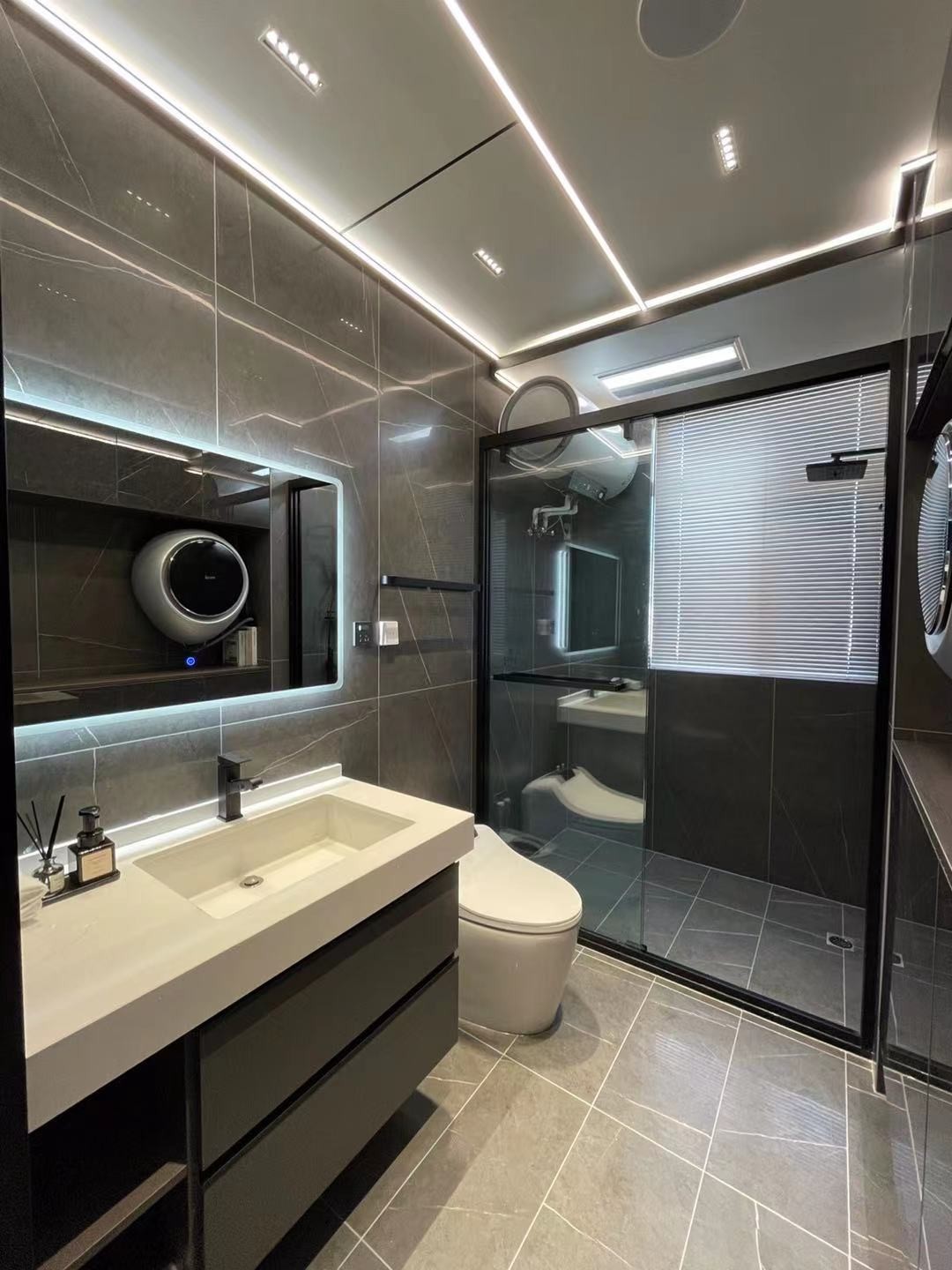 現(xiàn)代風(fēng)格的衛(wèi)生間,采用暗光的色調(diào)