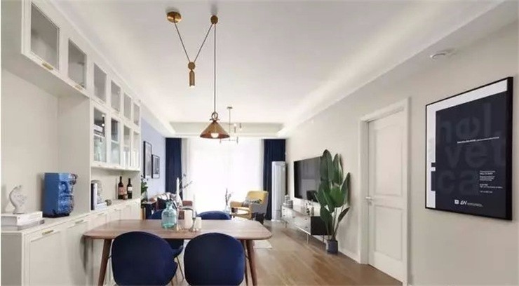 110㎡時(shí)尚混搭風(fēng)裝修風(fēng)格,除了原有的精致包裝,以藍(lán)色為主色調(diào),營(yíng)造出一個(gè)美貌與智慧兼具一身的住所。
