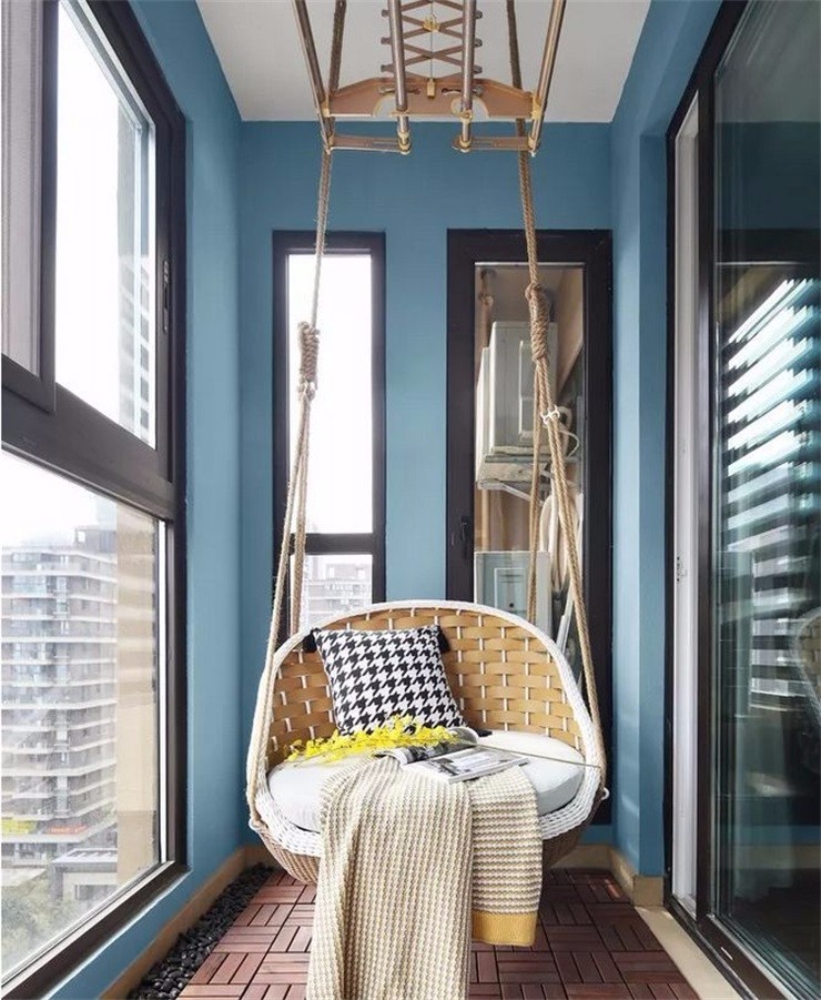 陽(yáng)臺(tái)復(fù)古的竹籃吊椅,閑暇的午后手捧一本書,在陽(yáng)光的撫摸下,整個(gè)人***都是好心情。????
