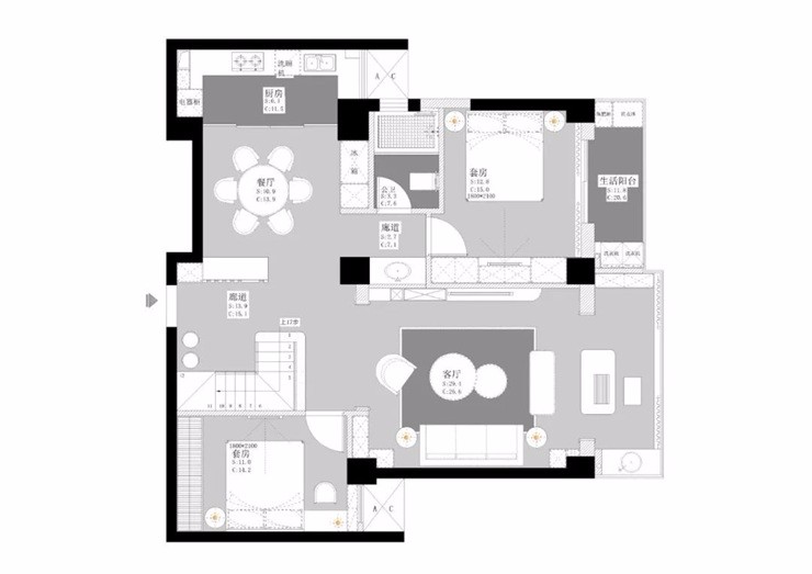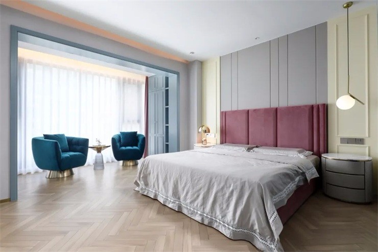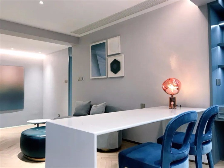 設(shè)計(jì)師在細(xì)節(jié)處,融入更多音樂(lè)藍(lán)調(diào)浪漫的味道,結(jié)合象牙白的優(yōu)雅大氣色調(diào),規(guī)劃出一個(gè)通透闊亮的空間。