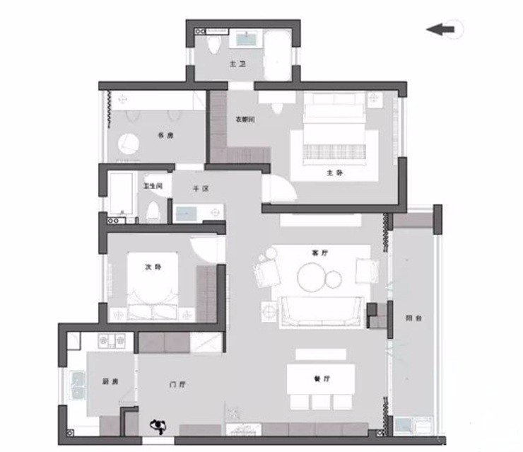 淺灰色的靜謐空間,加入純凈的白色和溫潤(rùn)的木色,營(yíng)造一個(gè)自由自在的減壓空間。