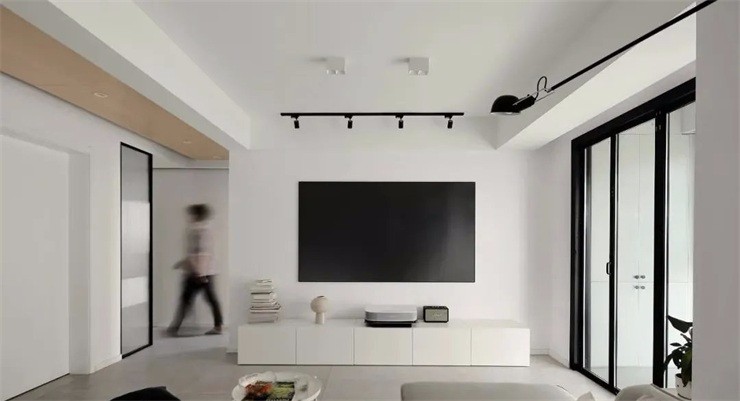 白色墻面懸掛黑色激光電視屏,黑白配詮釋時(shí)尚質(zhì)感,通透的空間讓客餐廳,同時(shí)享有大屏高清體驗(yàn)。