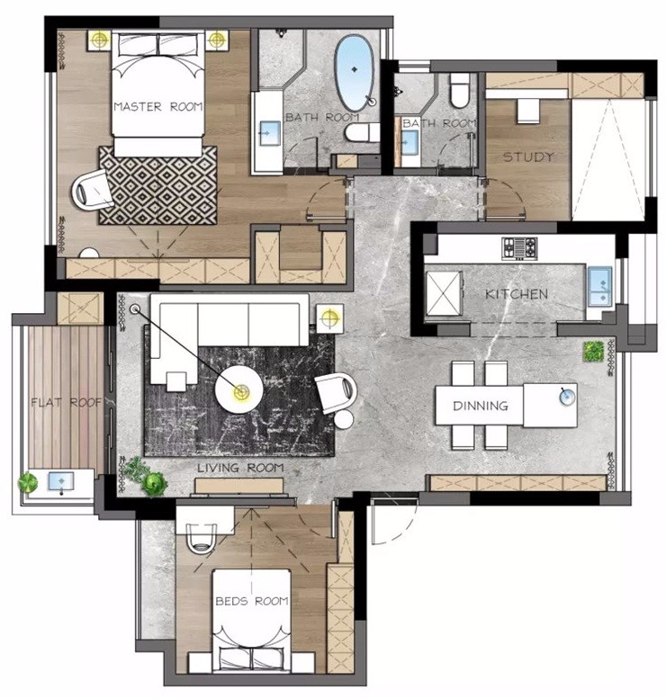 設(shè)計(jì)師以灰色作為主調(diào),搭配溫馨的木質(zhì)感和大理石元素,來(lái)營(yíng)造一個(gè)華麗優(yōu)雅的空間,參觀之后就感覺(jué)這套房子非常有檔次,既實(shí)用又美觀。