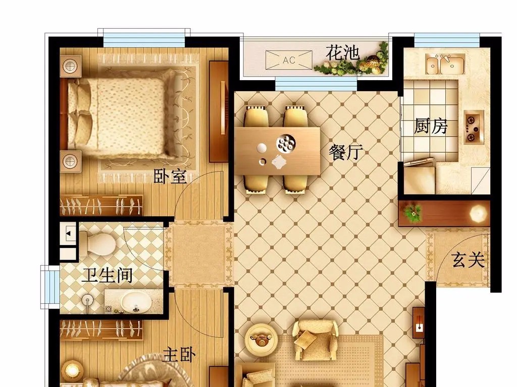 通透兩居,功能分區(qū)合理。