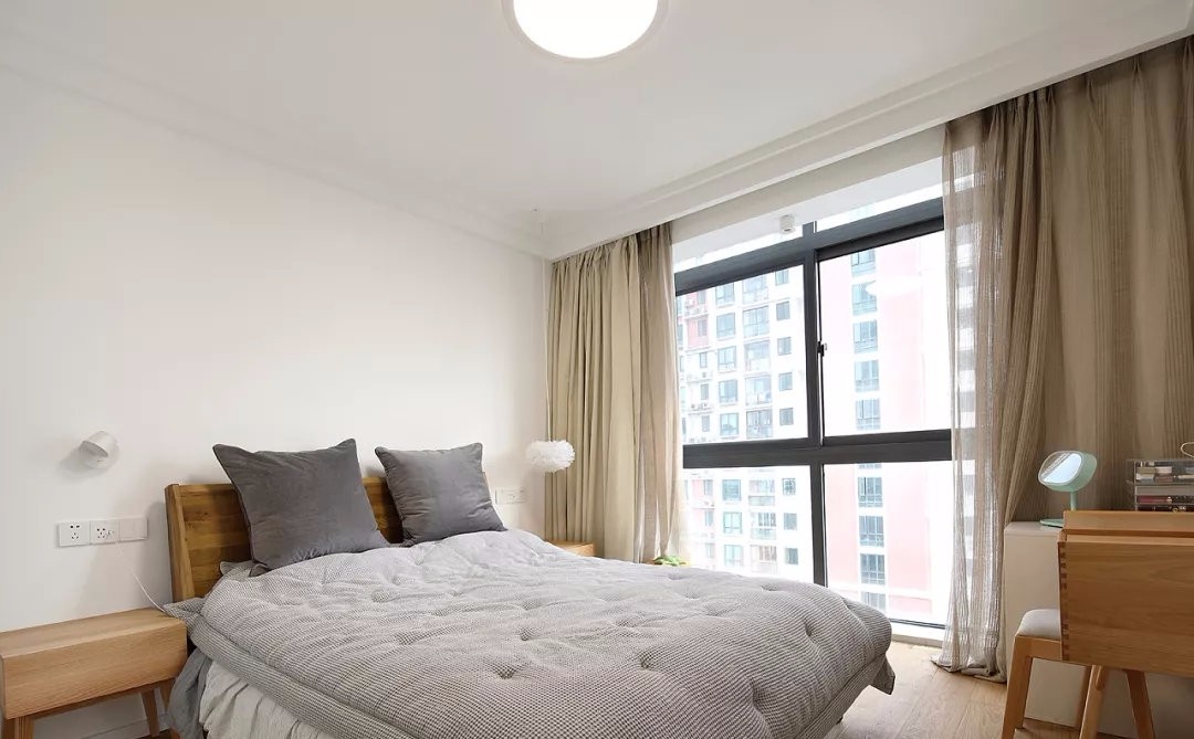 臥室硬裝方面也是簡潔為主,搭配上簡約自然的床鋪與軟裝布藝,讓空間充滿了舒適輕松的氛圍感。