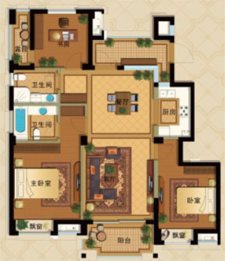 開闊三房設計,空間錯落有致。南北通透,居者神清氣爽。