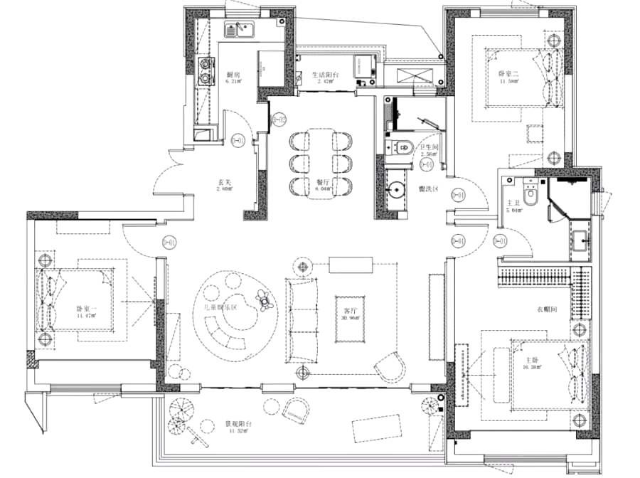 將客廳餐廳與孩子玩耍區(qū)為一體。