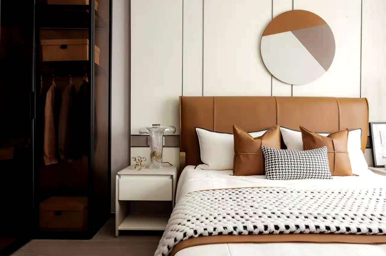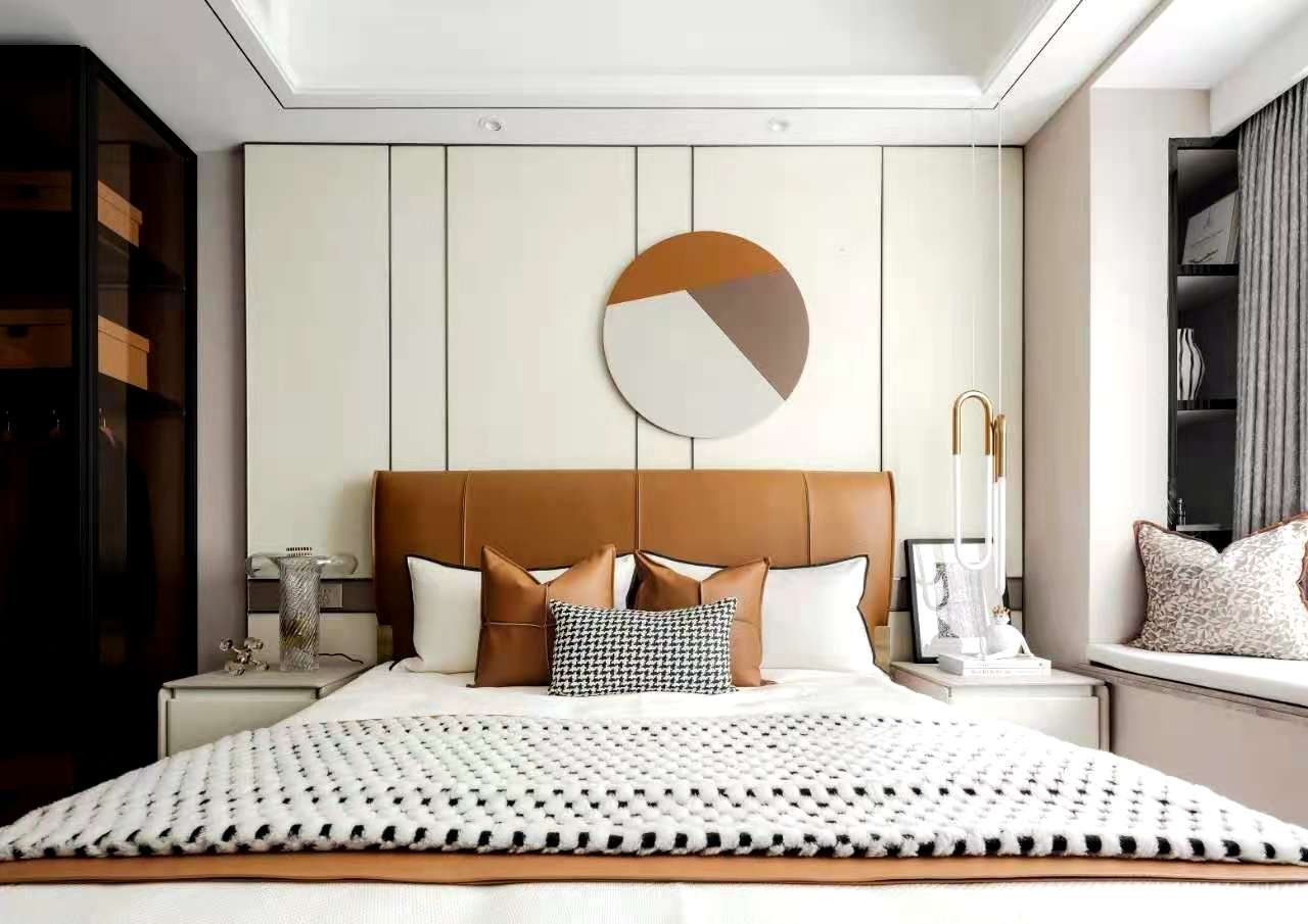 圓弧形的裝飾品呼應(yīng)床品的色彩,提升空間質(zhì)感