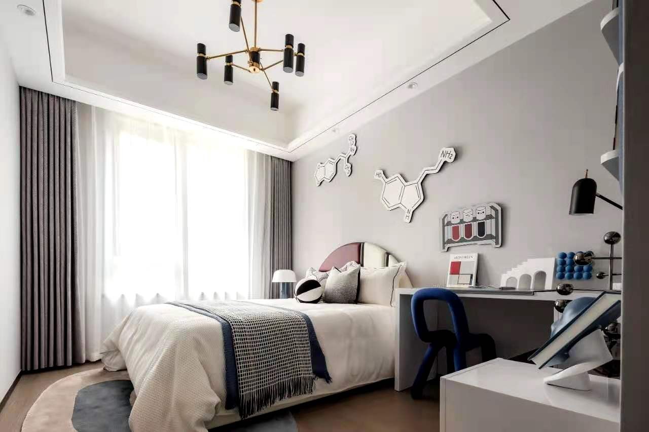 米灰色空間加入克萊因藍(lán),使兒童房充滿溫馨優(yōu)雅的氛圍
