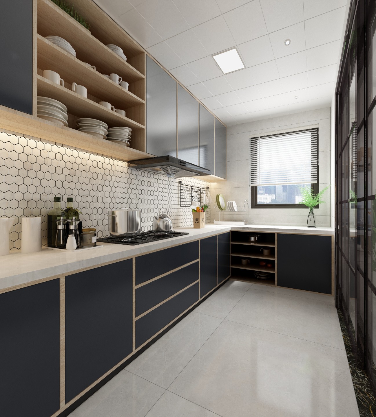 L型設(shè)計(jì),采光充足,深色搭配,***感