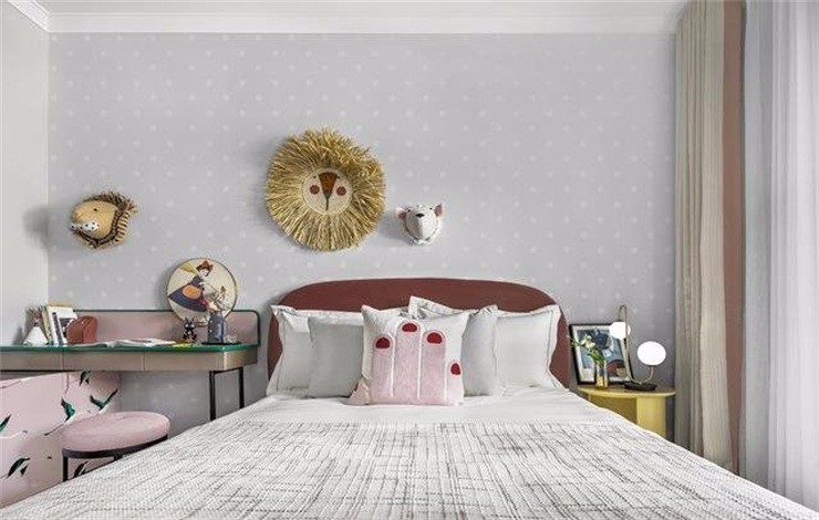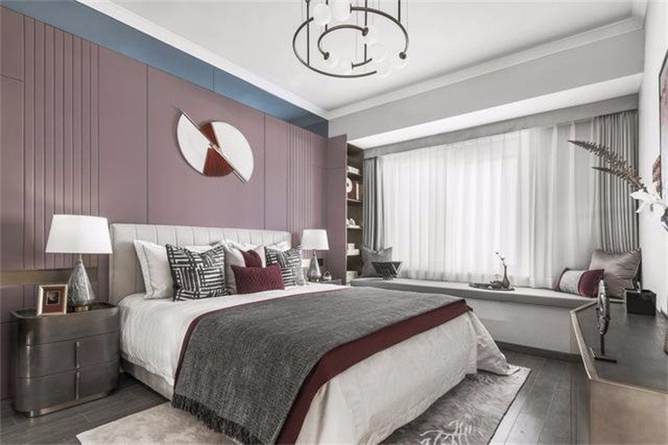 主臥的場(chǎng)景感通過(guò)大面積的床背景凸顯出來(lái),以現(xiàn)代雅致為基調(diào),巧妙糅合空間與家具,少量的金屬做為點(diǎn)綴,紅與白的適量組合,整體而有節(jié)奏感。