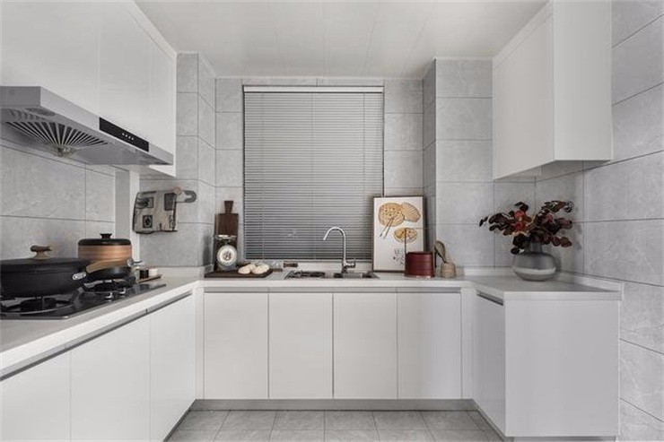 廚房延續(xù)了空間的純凈感,遵循“少即是多”的原則,精致的花藝與飾品有序的陳列,打造生活的氣息。