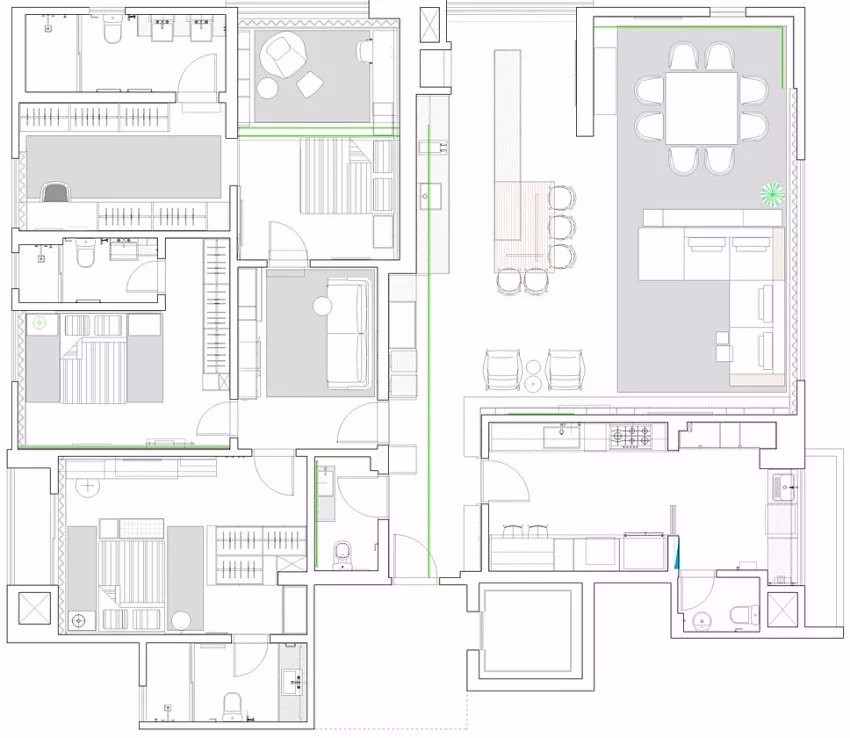 餐廳客廳有機結(jié)合,增強空間感,出入自由。