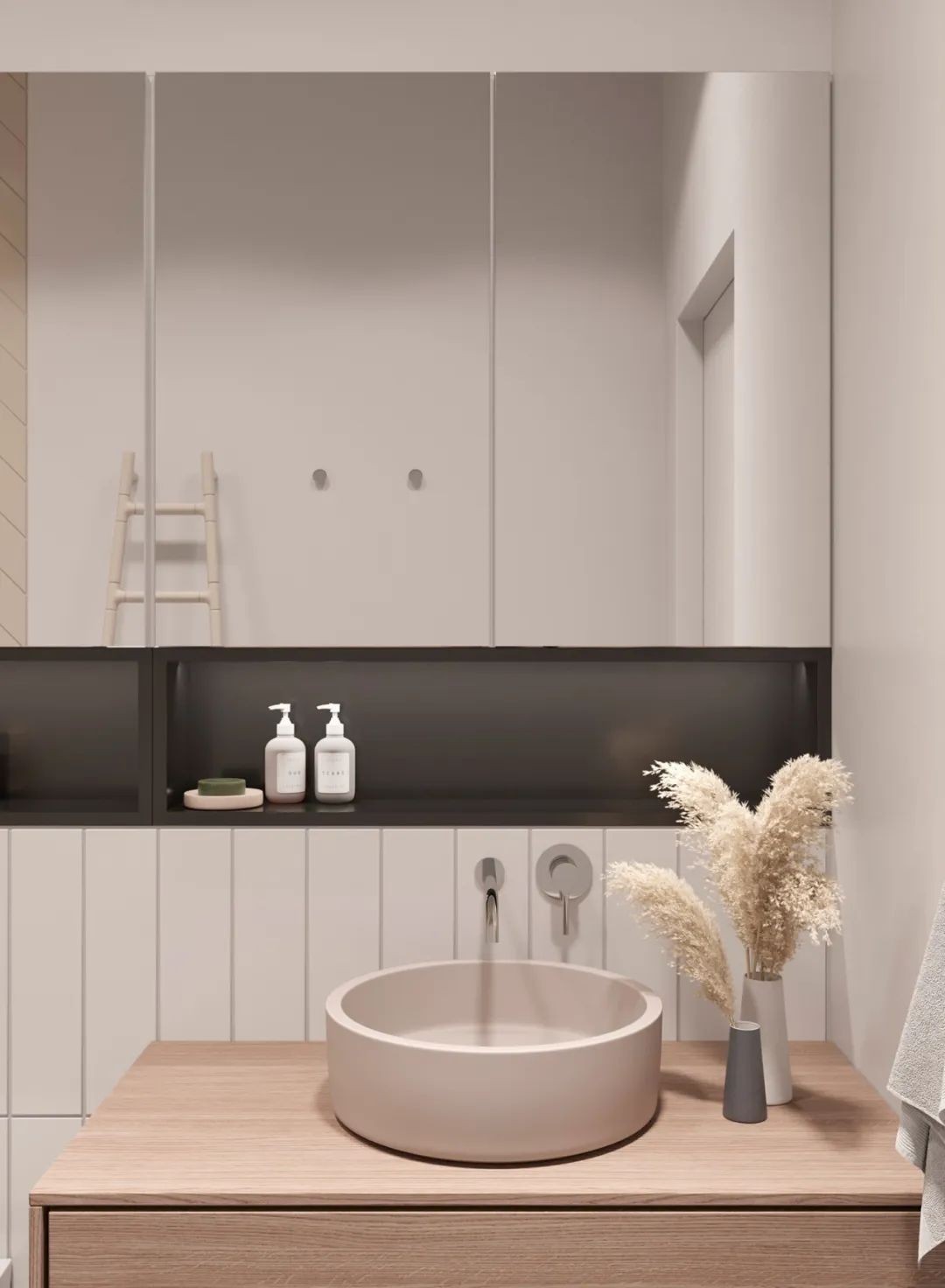 冰白色的墻壁與暖色調(diào)相得益彰,米黃色的盆地給人以獨(dú)特的視覺效果。