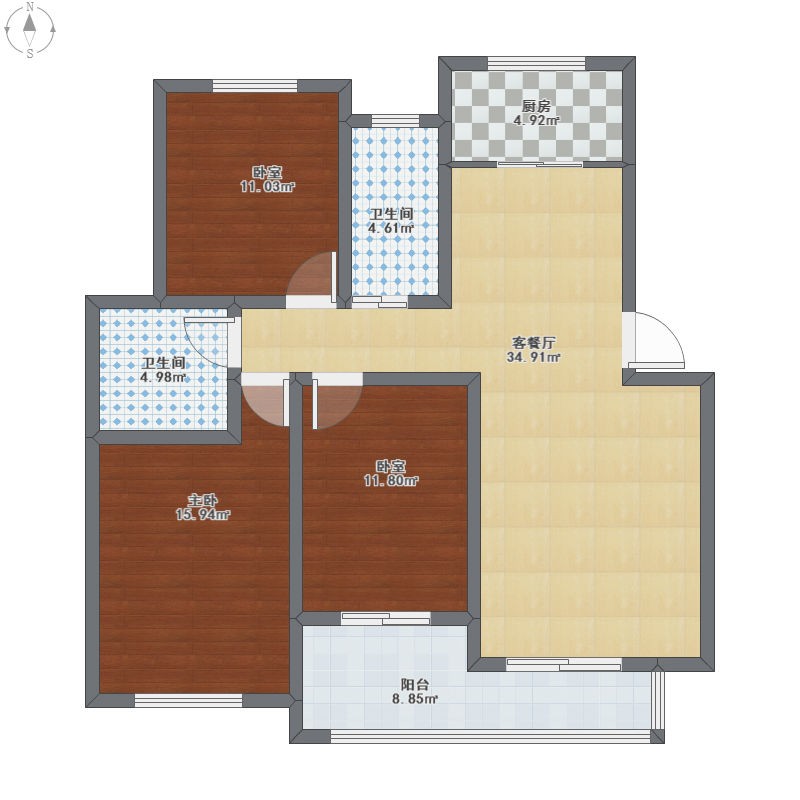 通透三居,功能分區(qū)合理。