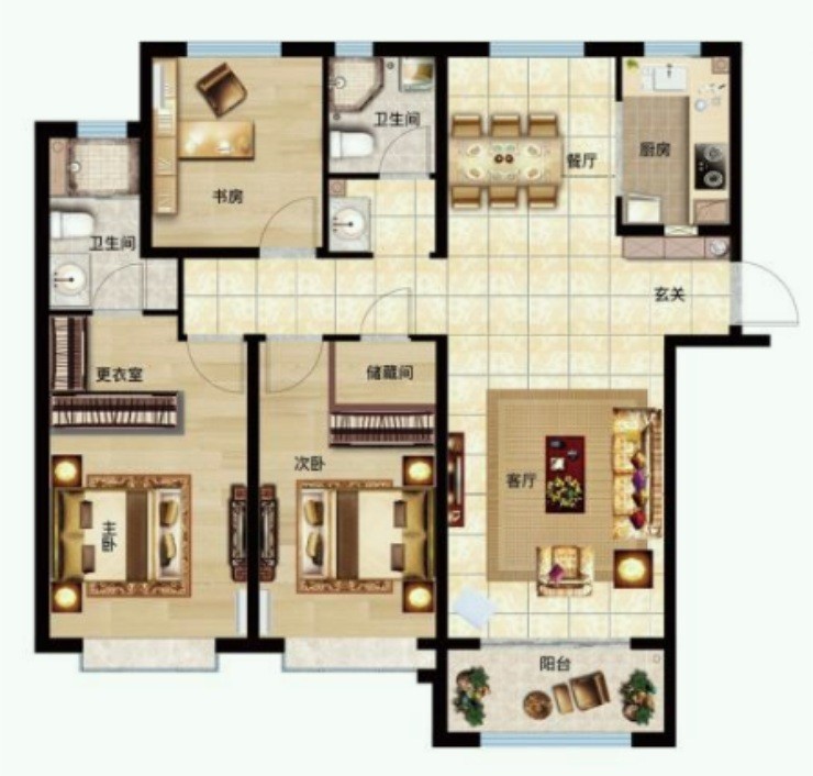 戶型設(shè)計(jì)簡約明快,動靜干濕分離,科學(xué)分區(qū)。