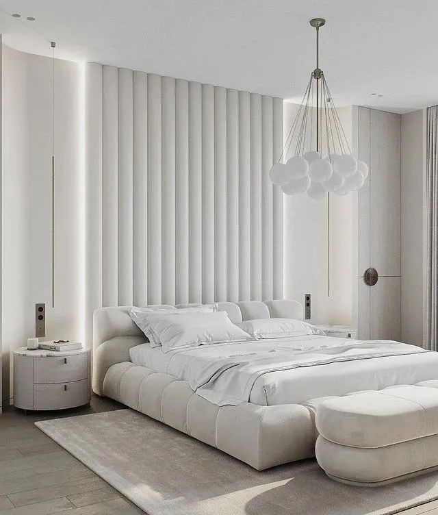主臥采用白色為主色系,搭配大理石紋路,彰顯出安靜舒適氛圍。