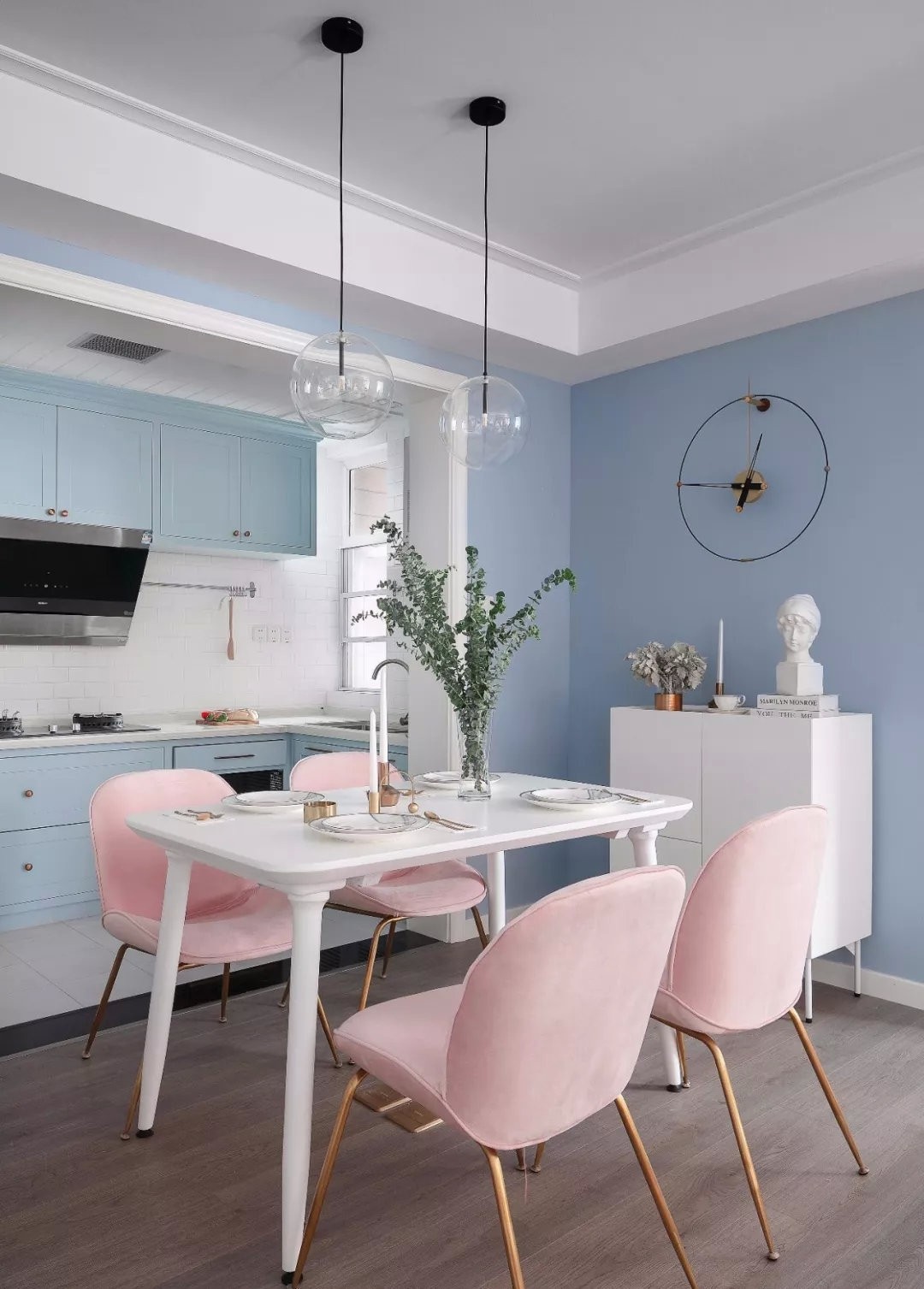 整個(gè)空間以莫蘭迪配色奠定溫暖清新的主基調(diào)。