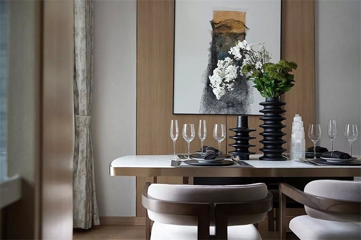 把中國傳統(tǒng)的復(fù)雜設(shè)計(jì)表現(xiàn)隱藏起來,采用含蓄的表現(xiàn)手法,體現(xiàn)東方韻味。營造新的中式空間家居風(fēng)格