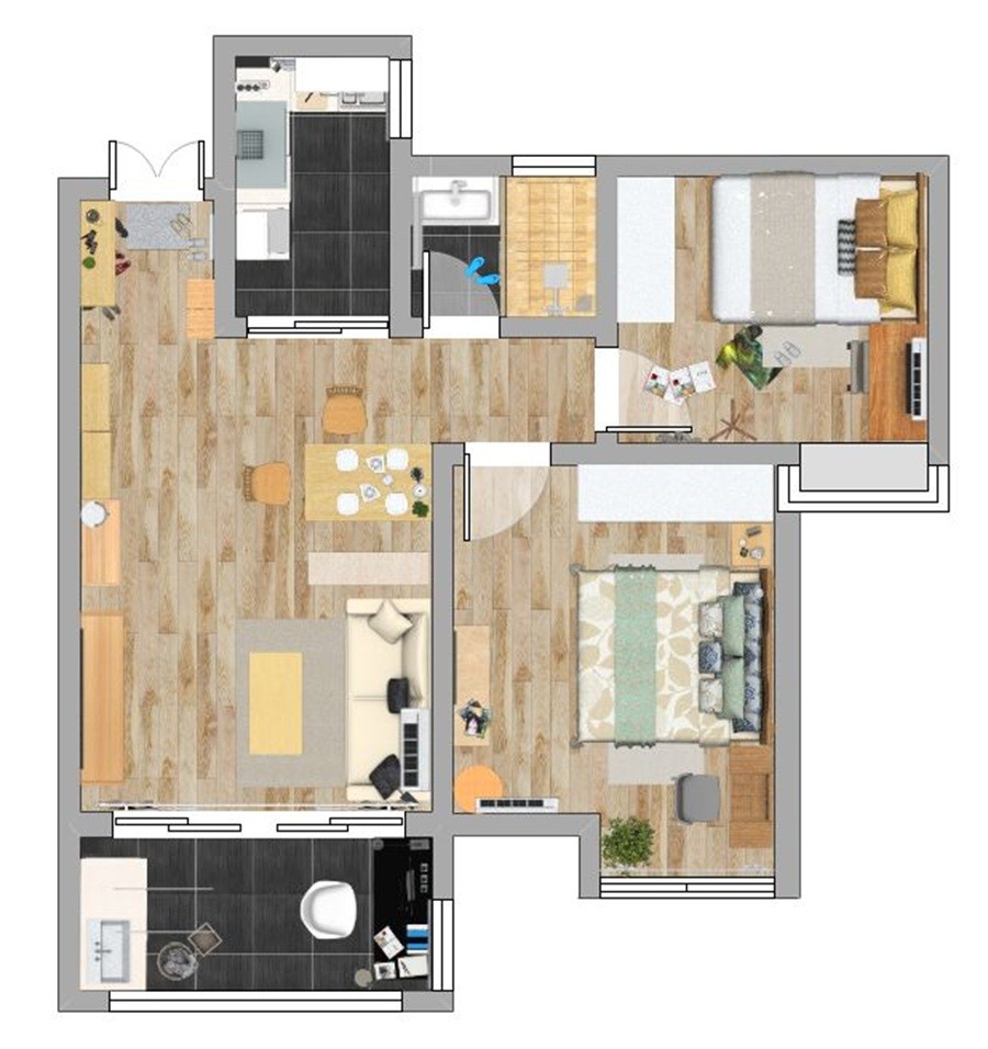 空間錯(cuò)落有致。南北通透,居者神清氣爽。