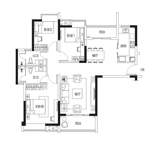 餐廳客廳有機(jī)結(jié)合,增強(qiáng)空間感,出入自由。