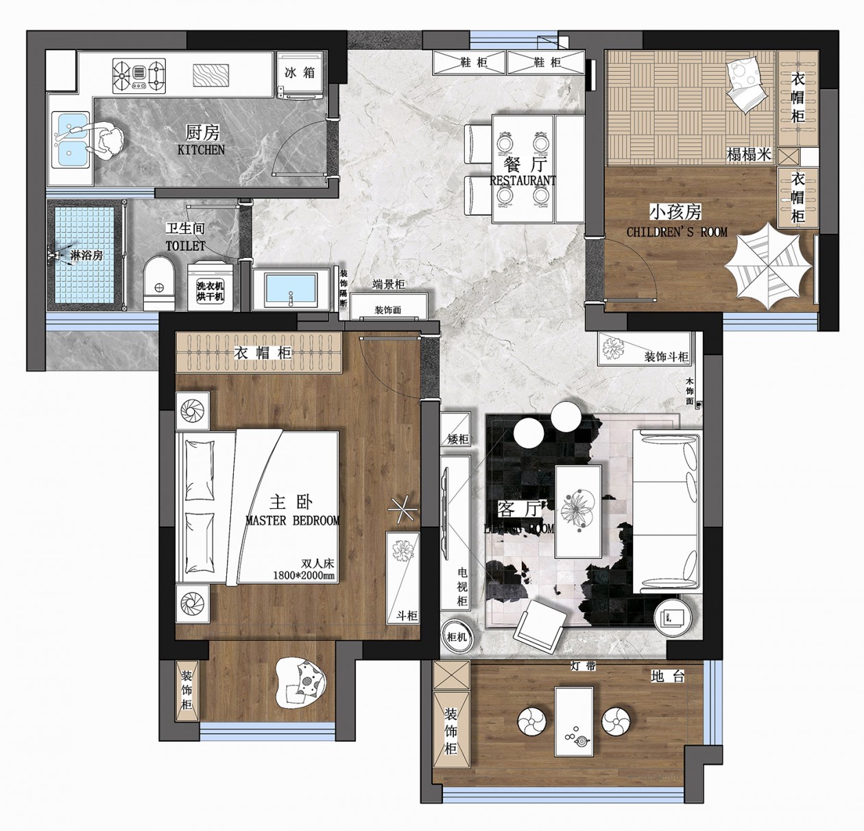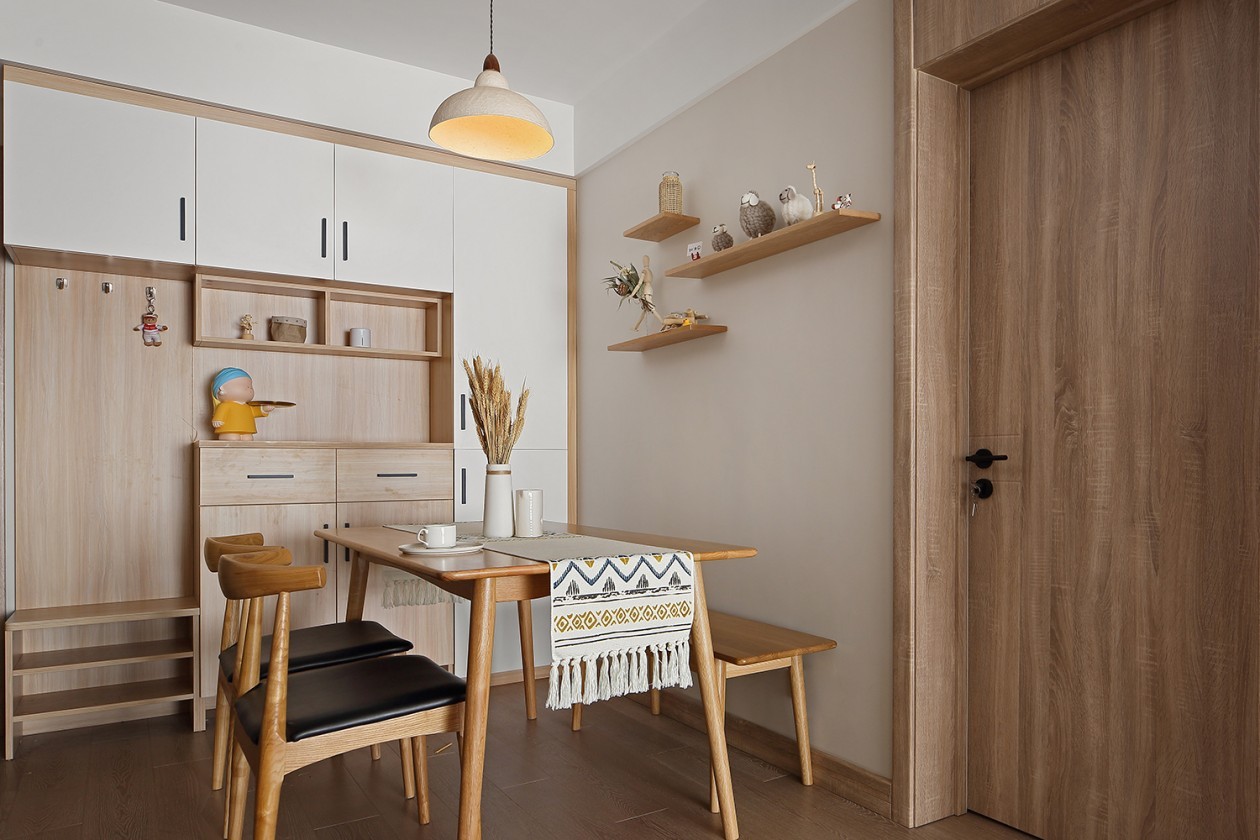 業(yè)主這套房子原來就是二手房,之前的裝修已經(jīng)非常陳舊,顯得整體采光非常暗。餐廳空間也沒有利用好,沒有鞋柜、餐邊柜等儲物空間,整體顯得非常小還有暗。把蠻好的一個戶型浪費了。業(yè)主一家喜歡日式風格,以淡雅簡潔為主,因此我們在家中大量運用了原木色家具,去塑造自然簡約的家居氛圍。用明亮溫馨的配色,賦予家更加純粹的感覺,下班回家不必有那么多壓力