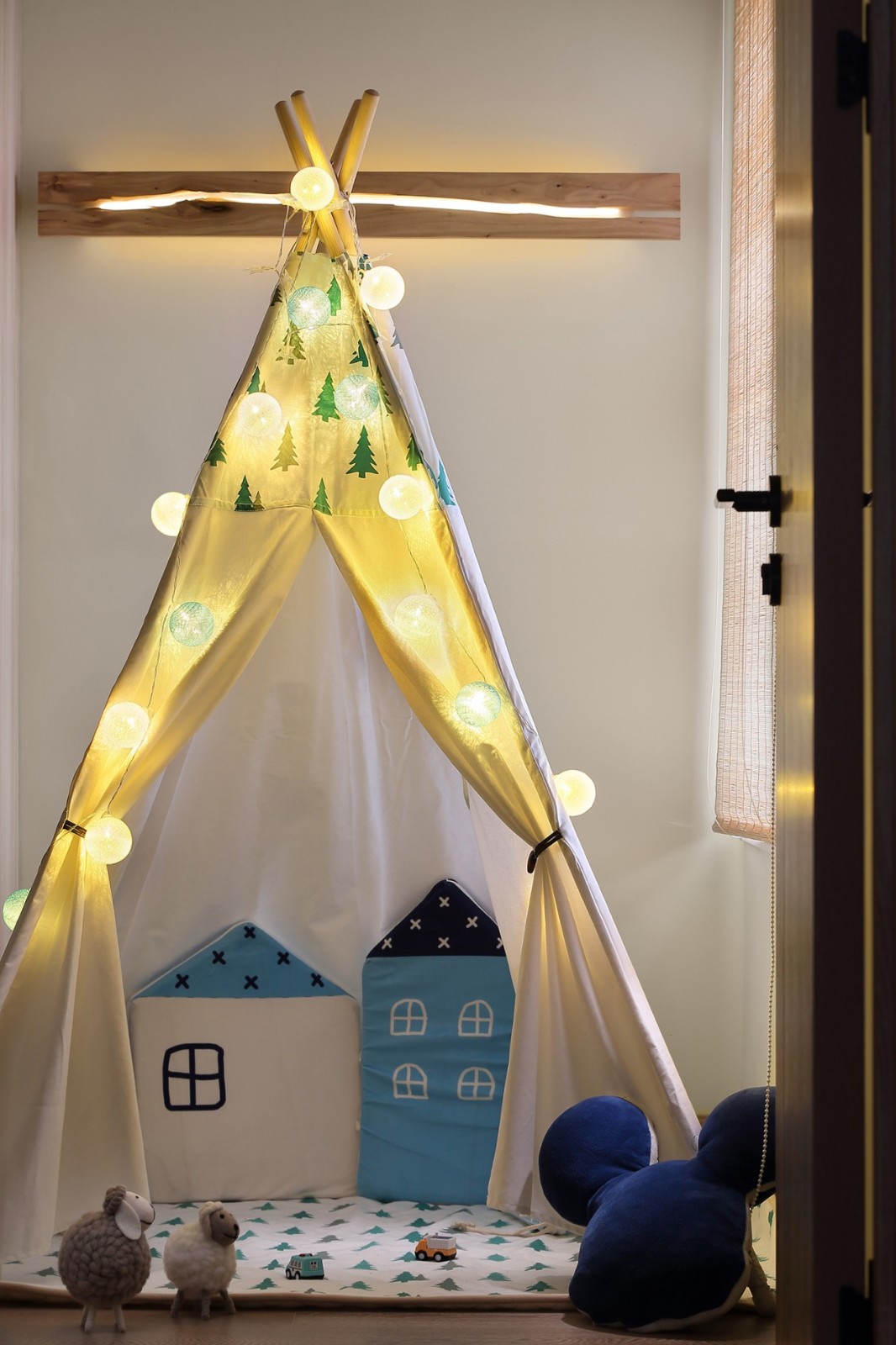 給孩子***的禮物,莫過于一個美滿的童年。色彩鮮明的小帳篷,萌萌的卡通玩具,亮亮的圓球氛圍燈,在這剛剛好的日子里,享受生活,享受童真。