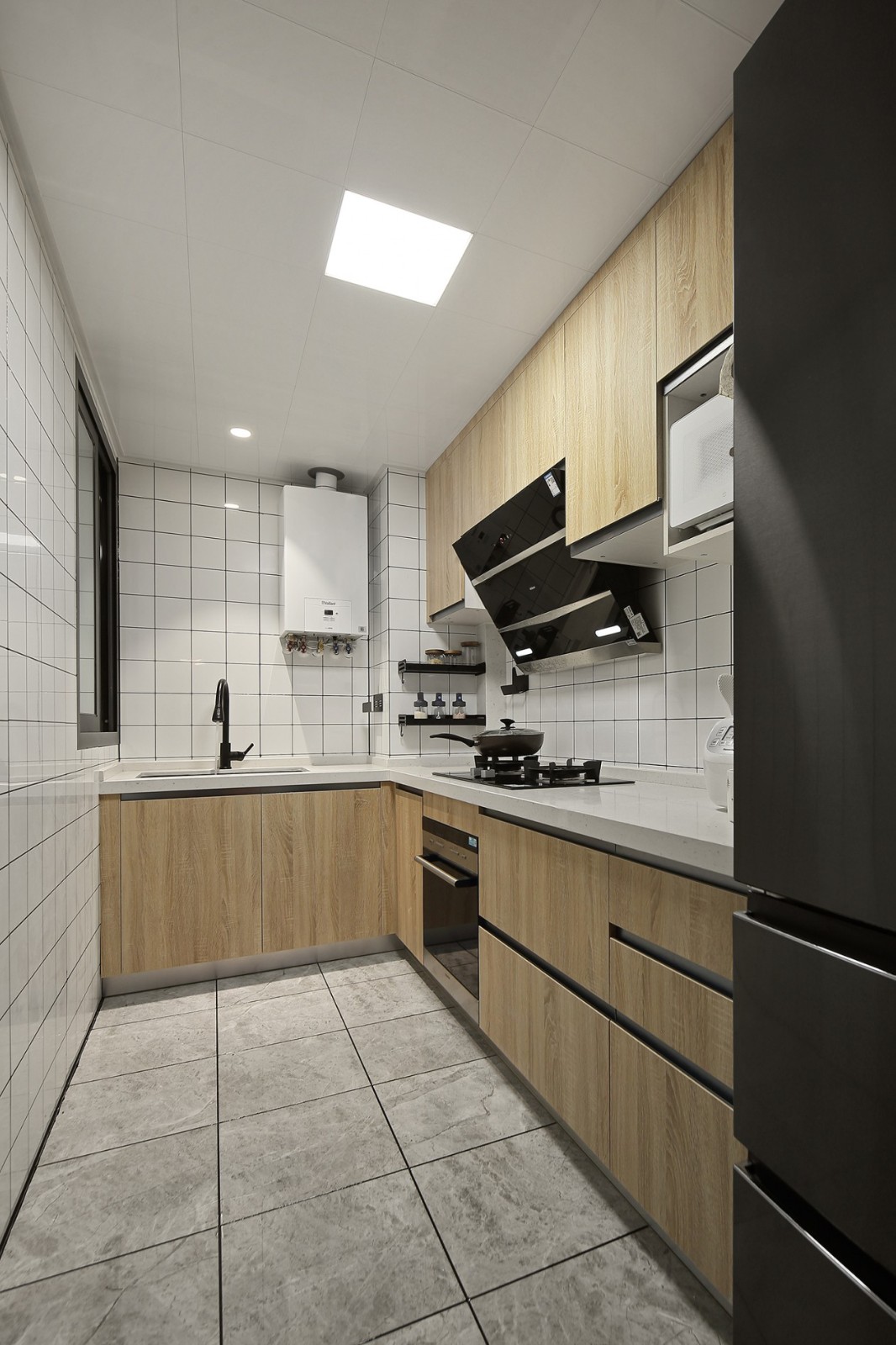 廚房也延續(xù)業(yè)主喜歡的原木風,用細膩的小方磚搭配原木色的櫥柜,拿出旅行收藏的食器,盛起親手烹制的美食,在平凡又瑣碎的日子里找到生活的詩意和不愿將就的勇氣。