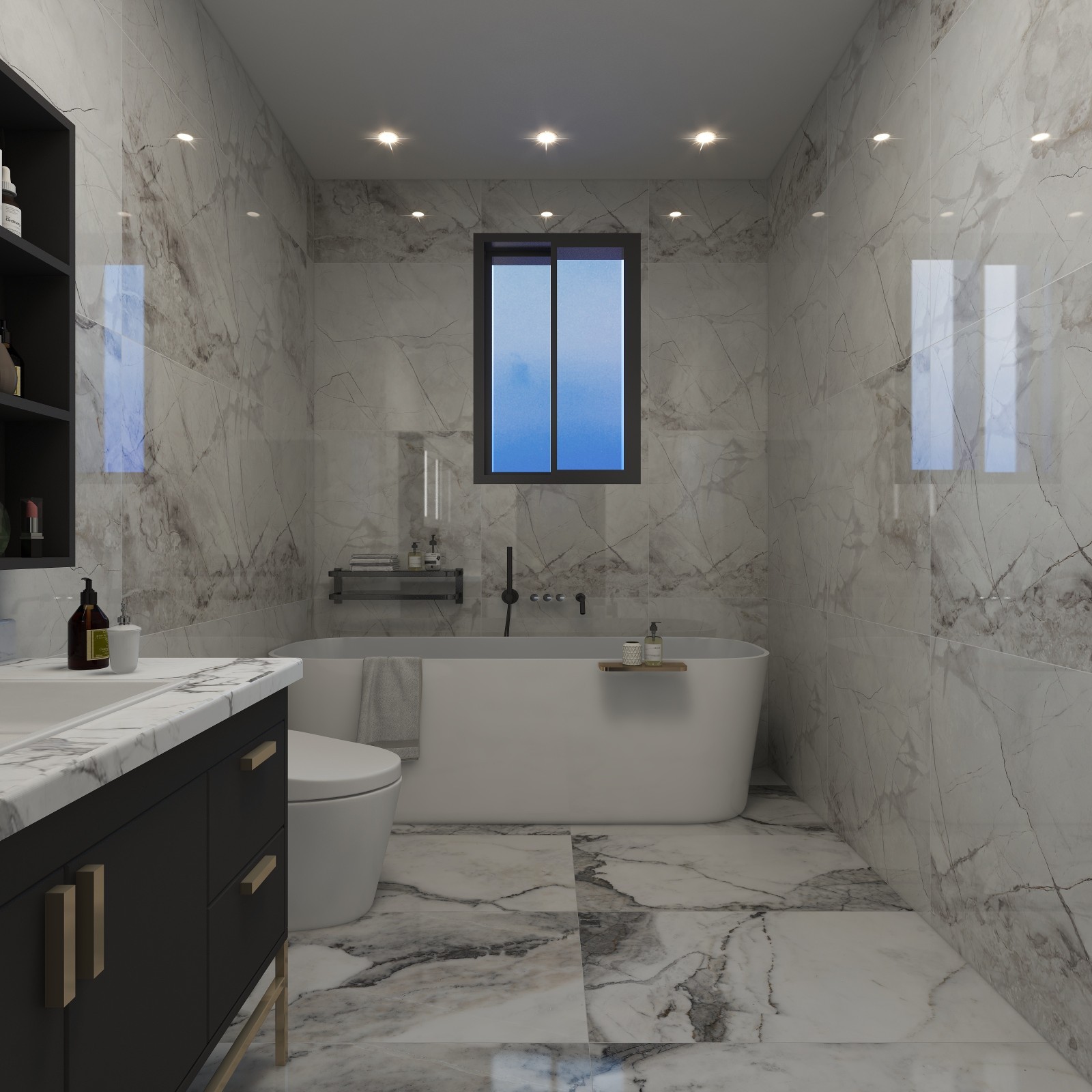 衛(wèi)生間以灰色為主色調(diào),加入一份特殊質(zhì)感